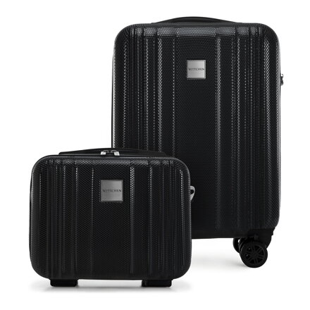 Mała walizka i kosmetyczka z polikarbonu tłoczone czarne 56-3P-301-10K