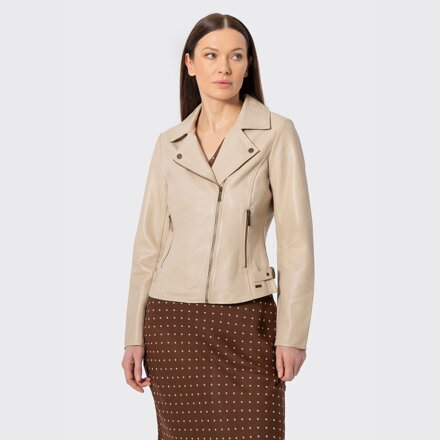 Damska kurtka ramoneska ze skóry naturalnej owczej kremowa 102-09-400-0 Čtěte více