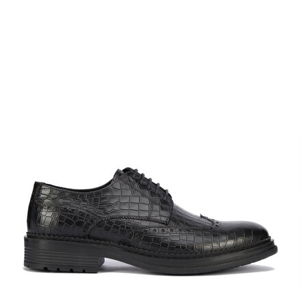 Męskie półbuty ze skóry croco czarne 95-M-504-1