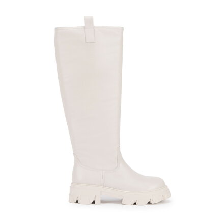 Damskie kozaki ze skóry na grubej podeszwie kremowe 95-D-511-0