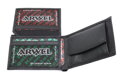2 priehradky na zložené bankovky (pozdĺžne), vrecko na mince, 4 vrecká na kreditné karty, 1 vnútorné a 1 priehľadné vrecko.