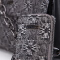 S týmto štýlovým doplnkom určite zaujmete. Džínsové vyhotovenie s monogramom WITTCHEN pokrýva prednú časť a klopu kabelky. Boky sú vyrobené z kvalitnej ekologickej kože. Vnútri nájdete dve komory, ktoré pomôžu udržať prehľad a pohodlne uložíte peňaženku, telefón, vreckovky, krém na ruky, malý kalendár a drobnosti. Kabelku môžete nosiť na ramene alebo v ruke po odopnutí dlhého reťazca. Tento model skvelo oživí jednofarebné šaty alebo dodá charakter ležérnemu outfitu s chinos nohavicami a tričkom. Džínová listová kabelka s monogramom je módny doplnok, ktorý využijete počas mnohých sezón.