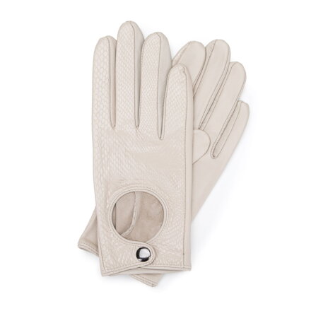 Damskie rękawiczki skórzane samochodowe klasyczne kremowe 46-6A-002-0