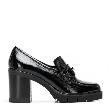 Szukasz butów, które łączą szyk z komfortem? Te lakierowane czółenka to kwintesencja kobiecej elegancji w nowoczesnym wydaniu. Wykonane z naturalnej skóry lakierowanej o subtelnym połysku, zachwycają klasą i starannym wykończeniem. Na przodzie znajduje się dekoracyjna klamra o błyszczącym wykończeniu – szykowny akcent, który dodaje stylu i przyciąga spojrzenia. Nosek w kształt migdała delikatnie wysmukla stopę, a stabilny obcas typu słupek gwarantuje wygodę przez cały dzień. Wnętrze z miękkiej skóry zapewnia przyjemne dopasowanie, a gumowa podeszwa zwiększa przyczepność i trwałość.