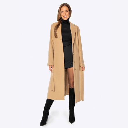 Wełniany płaszcz z domieszką kaszmiru camelowy 101-9W-700-0