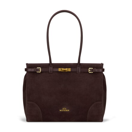 Damska shopperka ze skóry naturalnej o fakturze zamszu ciemny brąz 101-4E-203-4