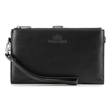 Elegancki portfel w rozmiarze XL, który pomieści wszystko, co potrzebne. Może także służyć jako poręczna torebka kopertówka na wieczorne wyjście – dopnij tylko pasek do zawieszenia na nadgarstku. W środku portfel ma kieszeń na telefon o maksymalnych wymiarach 16 x 9,5 cm. Znajdziesz w nim też obszerną komorę na banknoty lub dokumenty i liczne kieszonki i przegródki. Ten damski portfel ma także zamykane na suwak kieszenie na przykład na bilon, do których dostęp jest od góry, bez otwierania całości. Jest wyposażony w podszewkę z technologią RFID, która chroni karty przed szczytaniem danych (skimmingiem). Najwyższej jakości miękka skóra naturalna, z której jest wykonany, będzie wyglądała świetnie przez wiele lat.