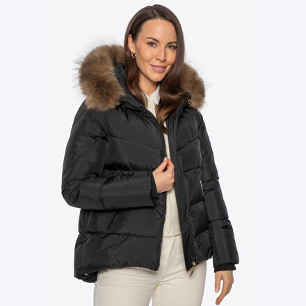 Dámska čierna páperová bunda s pružnými lemami 101-9D-400-1