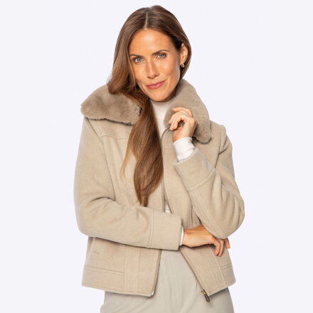 Krótka kurtka z odpinanym sztucznym futerkiem beżowa 101-9X-300-9